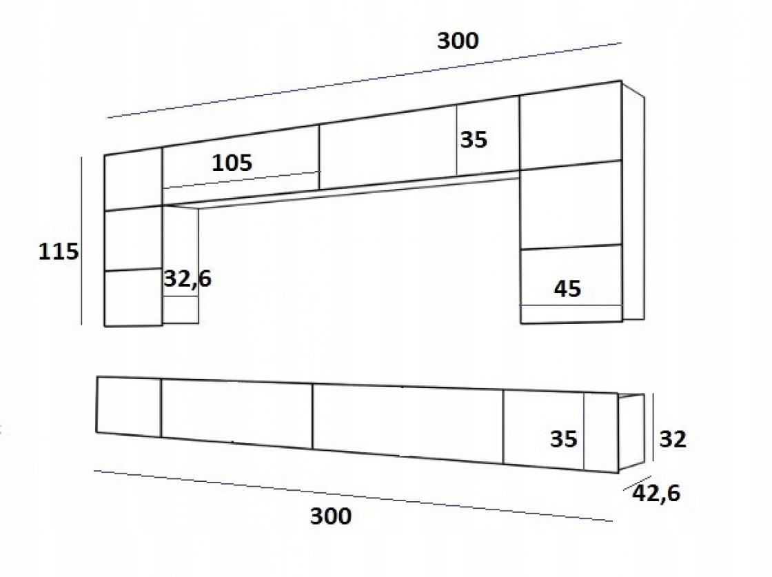 - Wymiary całkowite 300 x regulowana x 42
