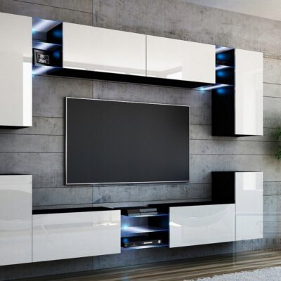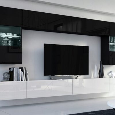 Meblościanka Nicea Biały,Czarny Połysk /mat 300 cm meble pokojowe do salonu