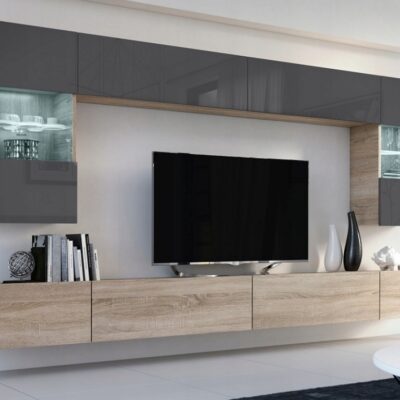 Meblościanka Flow Szary Połysk / Sonoma 300 cm meble pokojowe do salonua\