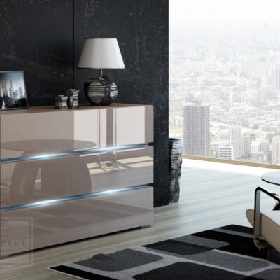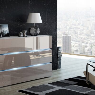 NOWOCZESNA KOMODA SHINE 120CM BEŻOWY połysk/biały oświetlenie LED