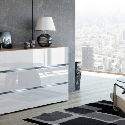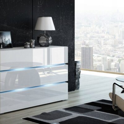 NOWOCZESNA KOMODA SHINE 120CM biały połysk/czarny oświetlenie LED szuflady